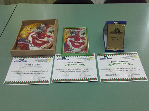 У суботу 28.10.2017. у месту Торак удружење “Деца Торка” организовало је IV позоришни фестивал за децу такмичарског карактера – Фестивал Арлекин. Конкуренти су били ученици Баната са наставе на румунском наставном језику , а такмичили су се у четири категорије: позоришне трупе, рецитовање поезије писане књижевним језиком, рецитовање поезије на банатском дијалекту, монолог. Ученици IV разреда наше школе са наставе на румунском наставном језику освојили су III место, бронзану плакету, представом у стиху „Принц Миорлау“ Нине Кассиан. За мушку улогу Виктор Влад Болдовина освојио је III место, бронзани Арлекин. Диплому за костим добила је и Моника Болдовина , родитељ овог одељења. Ученике је припремала и водила учитељица Аурелија Крајете. Похвалу је добила и учитељица Анишоара Тодор која је припремала ученицу у рецитовању.Рецитовали су ученици : Флавиу Чинч , Сара Ђан , Натањел Пасула и Виктор Болдовина .Честитамо им и желимо им пуно успеха у даљем раду.