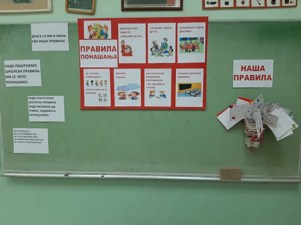 У петак, 25.октобра 2019. године успешно је приведен крају први пројекат ученика I2 одељења.Тема пројекта била је ”Драга су ми и мила сва наша правила”. Радећи овај пројекат ученици су се боље упознали, лепо сарађивали у планираним активностима,упознали правила понашања у школи и одељењу,схватили важност утврђених правила за њих као и потребу да свакодневно подсећају себе и другаре на поштовање договорених правила.Последњој радионици присуствовали су и родитељи ученика.Радионица је протекла у пријатној и радној атмосфери.