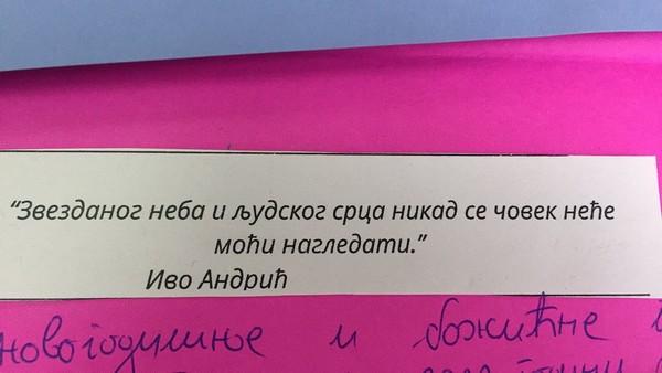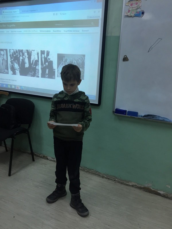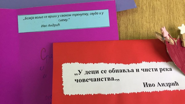 Ученици III-1 су под руководством своје учитељице Марије Селеши, реализовали пројекат под називом: ,,Пут до школе преко ћуприје на Дрини“, поводом обележавања 60 година од доделе Нобелове награде Иви Андрићу. Први час реализован је кроз пројектну наставу на тему: Упознавање са животом и радом нашег истакнутог књижевника; Презентовање лика и дела и читање пригодног текста о догађају из његовог детињства; Усвајање појмова књижевник, Нобелова награда, ћуприја. Други и трећи . час реализован је кроз предмет ликовна култура на тему: Израда новогодишњих честитки са цитатима Иве Андрића. Четврти час реализован је на Часу одељенског старешине где је остварено поново читање текста о Иви Андрићу и квиз са питања из прочитаног текста. Пројекат је реализован током друге и треће недеље децембра. Захваљујемо се библиотекарки Марији Шипка Пипадић, ОШ ,, Доситеј Обрадовић” у Пландишту на припрепљеном материјалу, за час и за квиз.
