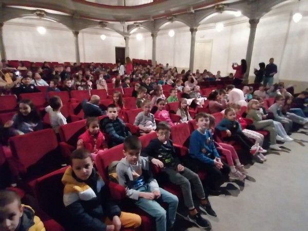 Ђаци нижих разреда школе су данас 13.04.2022. , у градском позоришту посетили представу ,,Филипинов магични шоу “.