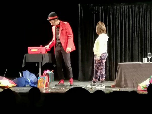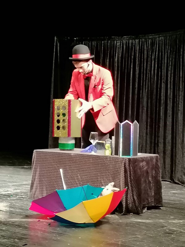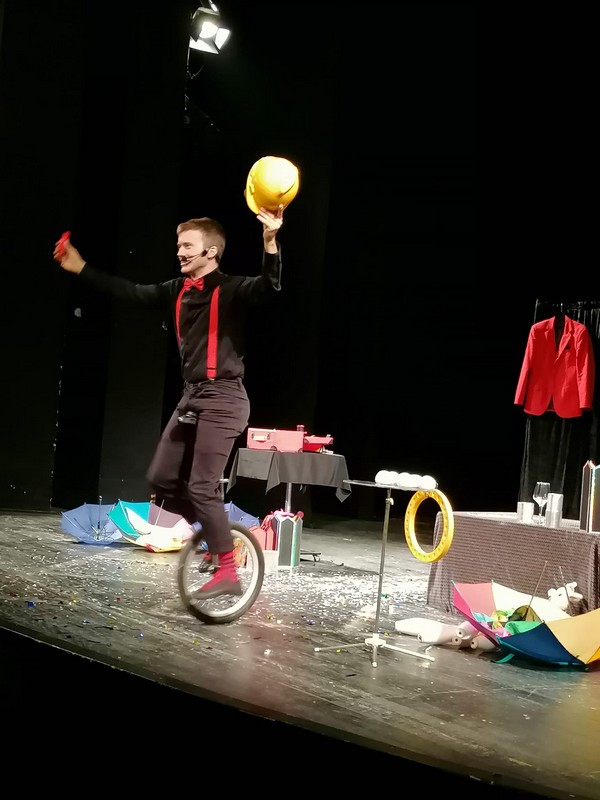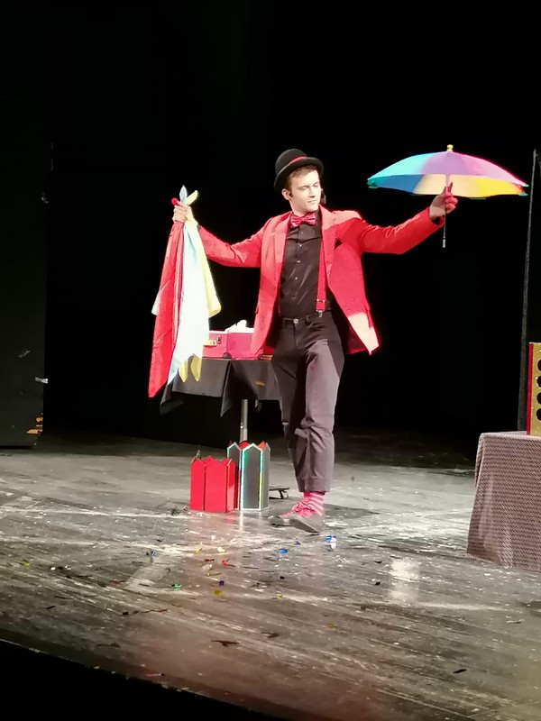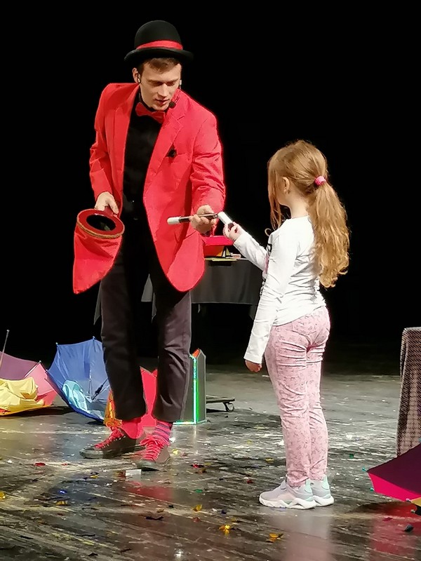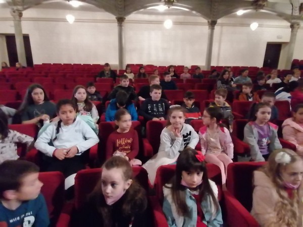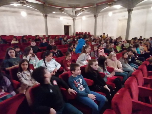Ђаци нижих разреда школе су данас 13.04.2022. , у градском позоришту посетили представу ,,Филипинов магични шоу “.