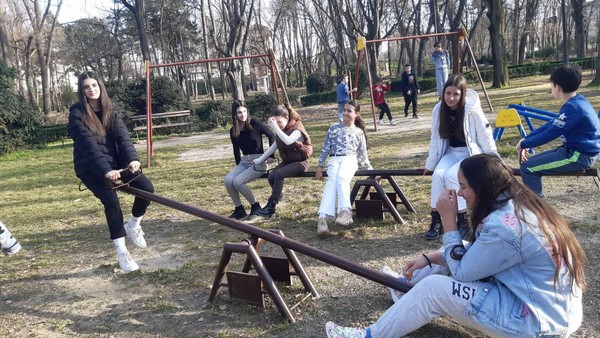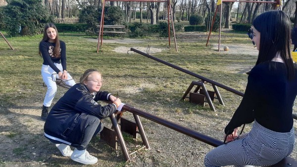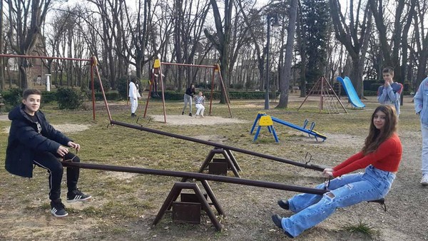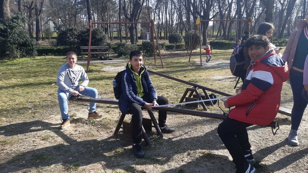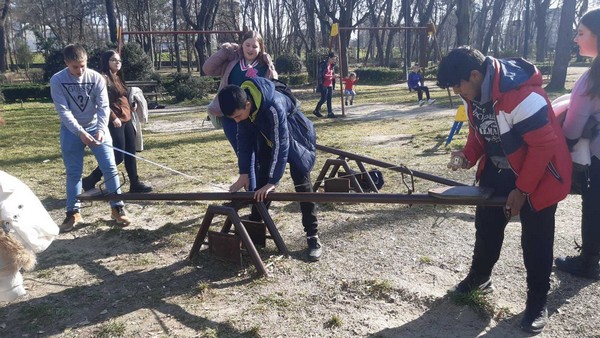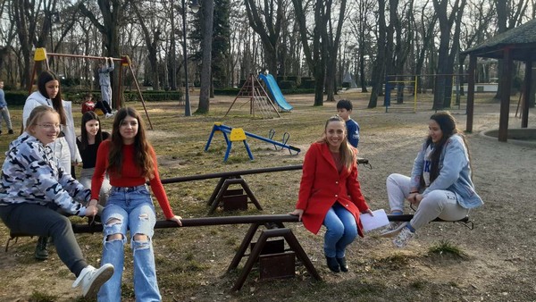 Данас 23.02.2023. су ученици 7-2 и 7-3 разреда са наставницом физике Опреа Иваном решавали задатке из лекције “Равнотежа полуге” на занимљив и сликовит начин, у парку клацкајући се на клацкалици. Мерећи дужину клацкалице, знајући где је њен ослонац, одређивали смо у односу на нашу масу где треба да седнемо да би клацкалица била у равнотежи.