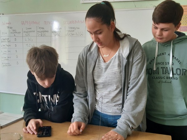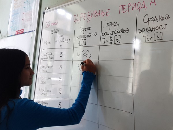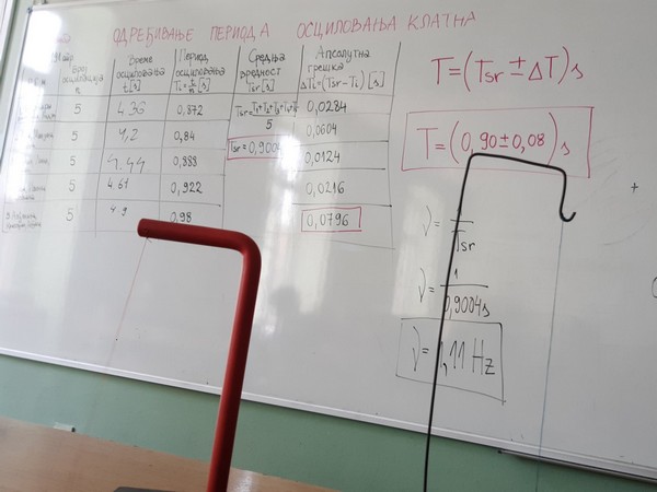 Наши матуранти су имали нешто озбиљнији задатак, а везан за претходне лекције које смо радили, да направе математичко клатно, мере време осциловања и рачунају период и тиме утврде научено градиво.