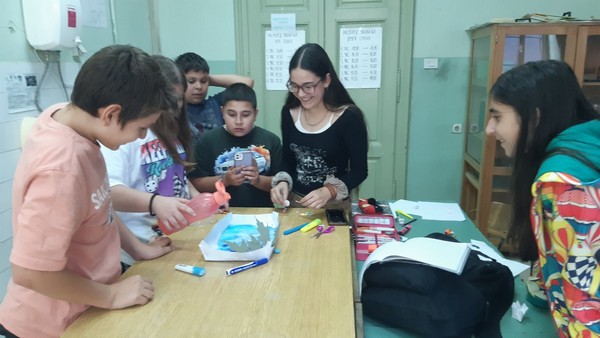 Наставница физике Опреа Ивана је са ученицима изводила експерименте у склопу обележавања Дечије недеље. Ученици су изразили жељу да направе акваријум са рибицама, заједно су цртали, бојили, лепили, секли и на крају са осмехом на лицу посматрали рибице како пливају у акваријуму.
