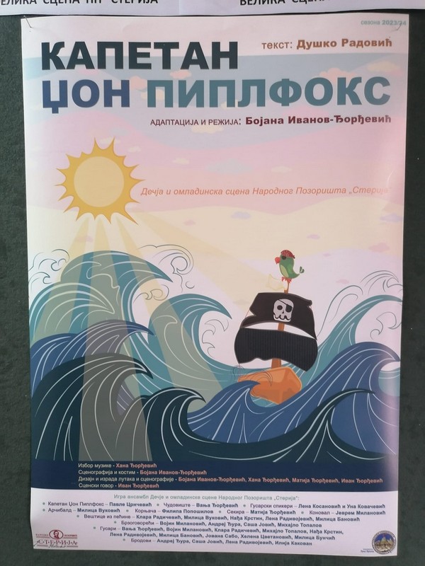 Ђаци одељења II-2 и IV-1 са учитељима Киш Даницом и Киш Зораном, 29.11.2023. посетили су позоришну представу ,,Капетан Џон Пиплфокс“ у Народном позоришту Стерија. Представа је реализована у оквиру пројекта „101 година Душка Радовића – 70 година Џона Пиплфокса“. То је партиципативни пројекат у коме деца и млади имају активну улогу, учествују у настанку културних догађаја и реализацији већег дела пројекта. Он доприноси развоју културних потреба деце и младих, развоју дечјег стваралаштва и образовања у свим областима уметности и културе, подстиче развој талената, истраживачки рад и критичко мишљење учесника пројекта. Ово је такође пројекат којим се мотивишу уметници на рад са младима, културни садржаји у оквиру провођења слободног времена и неговање културе разноликости.