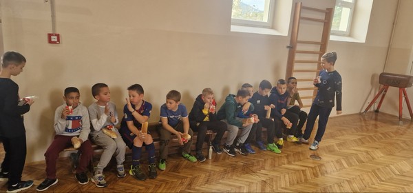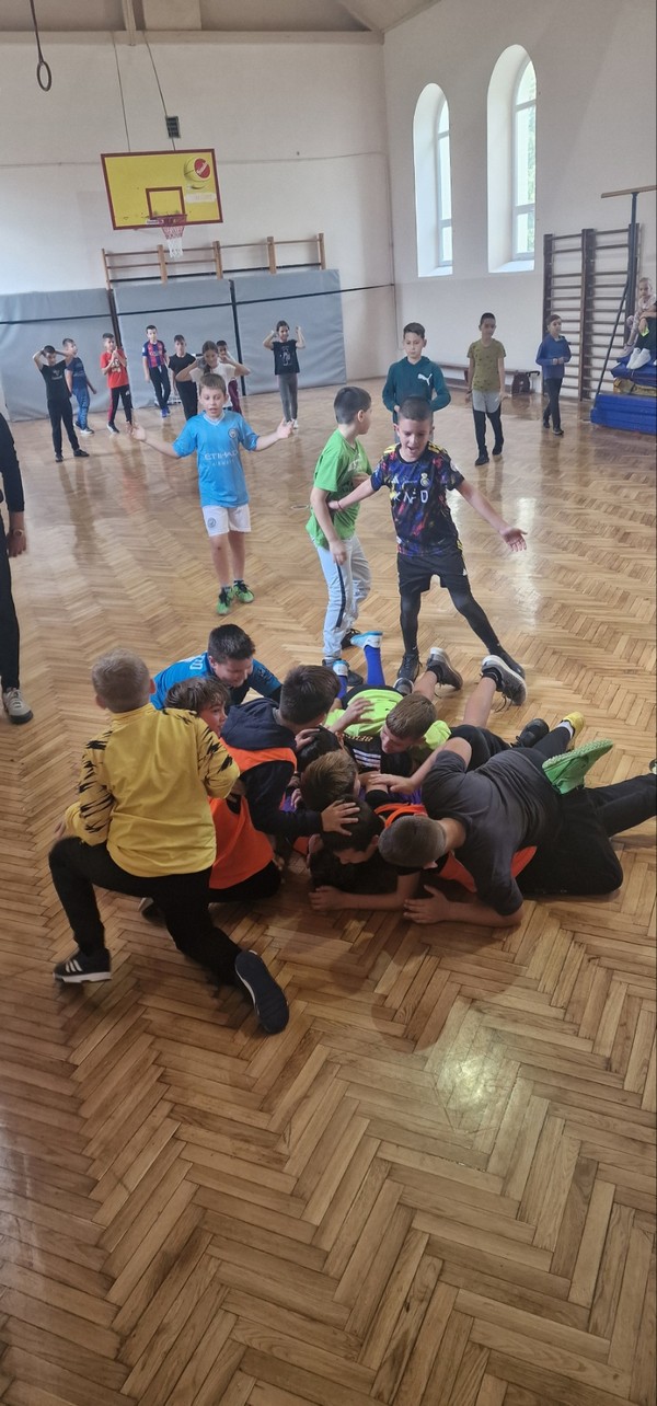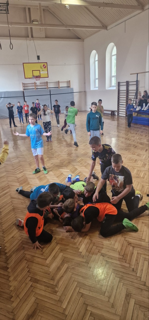 У оквиру пројекта ,,Партнерство за праведно и квалитетно образовање“ и Дечије недеље у ОШ ,,Вук Караџић“ у среду 9.10.2024. одржани су спортски сусрети ученика IV разреда. Нашу школу представљало је 11 ученика IV разреда , а водио их је проф. физичког и здравственог васпитања Маризел Кемпјан . Од свих присутних ученика из 3 школе направљено је 5 мешовитих екипа и организовано играње фудбала . На крају су деца послужена соковима и сендвичима и подељене су им захвалнице за учешће. Упознавања, дружења и игра су у овом дану деци била врло занимљива.