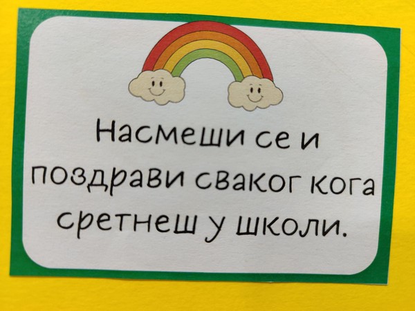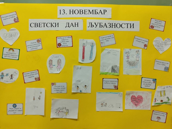Учитељица Даница Киш је са ђацима I-1 и I-2 који похађају наставу грађанског васпитања одржала радионицу којом је обележен Дан љубазности. Ђаци прваци имали су прилике да кажу и покажу како они показују љубазност , а и да науче на које све начине љубазност може да се покаже. На крају часа радовима ученика украшен је пано посвећен обележавању овог дана.