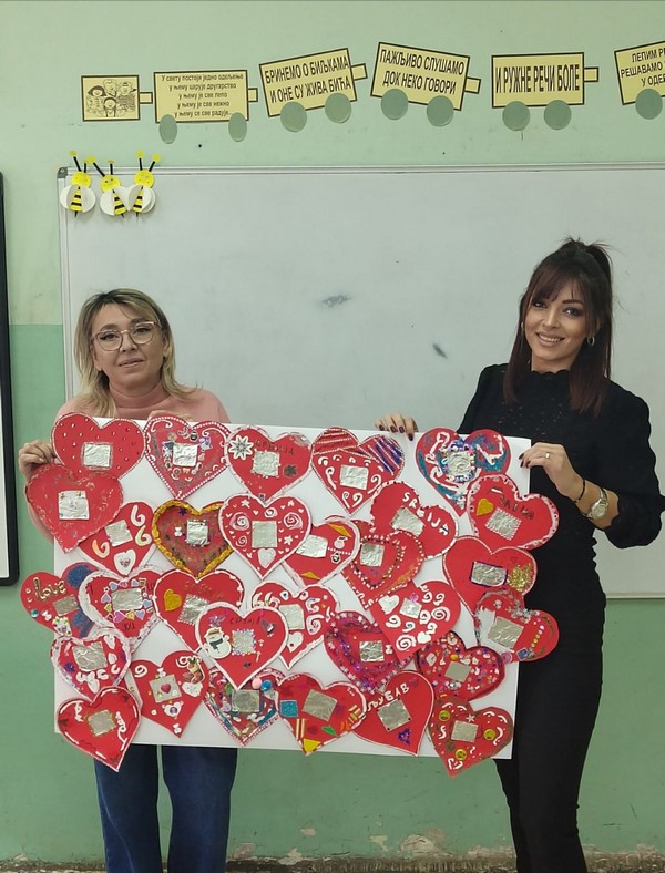 Ученици III-1 и ученици II-1 разреда су у оквиру обележавања Дана школе реализовали заједничку активност. У знаку неговања традиционалних вредности, правили су лицидерска срца од картона. Значајно место,током радионице, заузео је и разговор о љубави и романтици, о начину изражавања љубави некада али и у данашње време. Слушали су пригодну музику, и у лепој свечаној атмосфери израдили прелепа лицидерска срца. Нека од њих много личе на праве колачиће, о чему сведоче и фотографије. Радионицу реализовале две учитељице Марије, Бисерчић и Селеши са својим креативним ђацима.