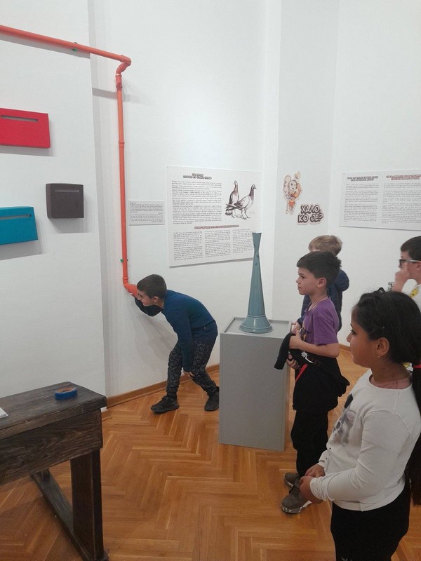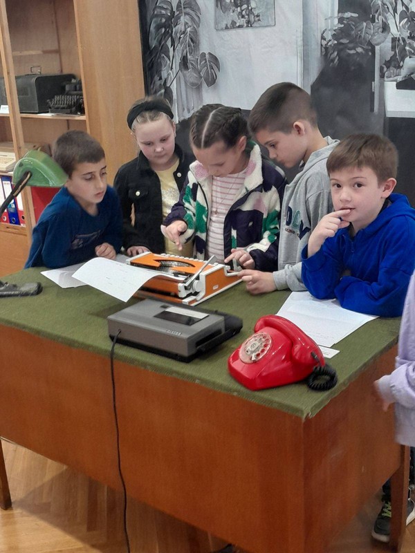 Среда 7.5.2025. – Ликовна култура – Посета изложби у Градском музеју ,,Лета пре нета “.Ученици су упознали средства и начине комуникације који су се користили у прошлим временима. Подсећање на правила комуникације међу људима и практични примери комуникације – писање честитки и разгледница , куцање на писаћој машини, комуникација маскама, фотографија као вид комуникације.