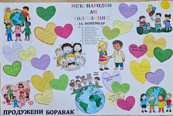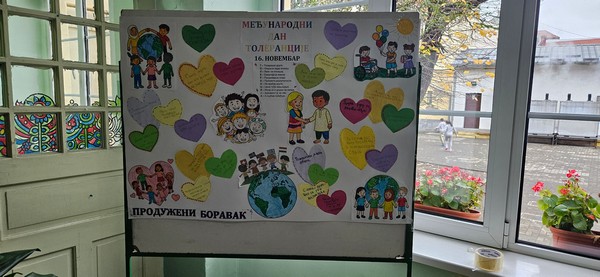 У продуженом боравку обележен је Међународни дан толеранције. Деца су писала поруке о толеранцији, цртала, бојила, гледала кратке видео-садржаје и разговарала о томе колико је важно прихватати различитости, поштовати друге и неговати лепо понашање.