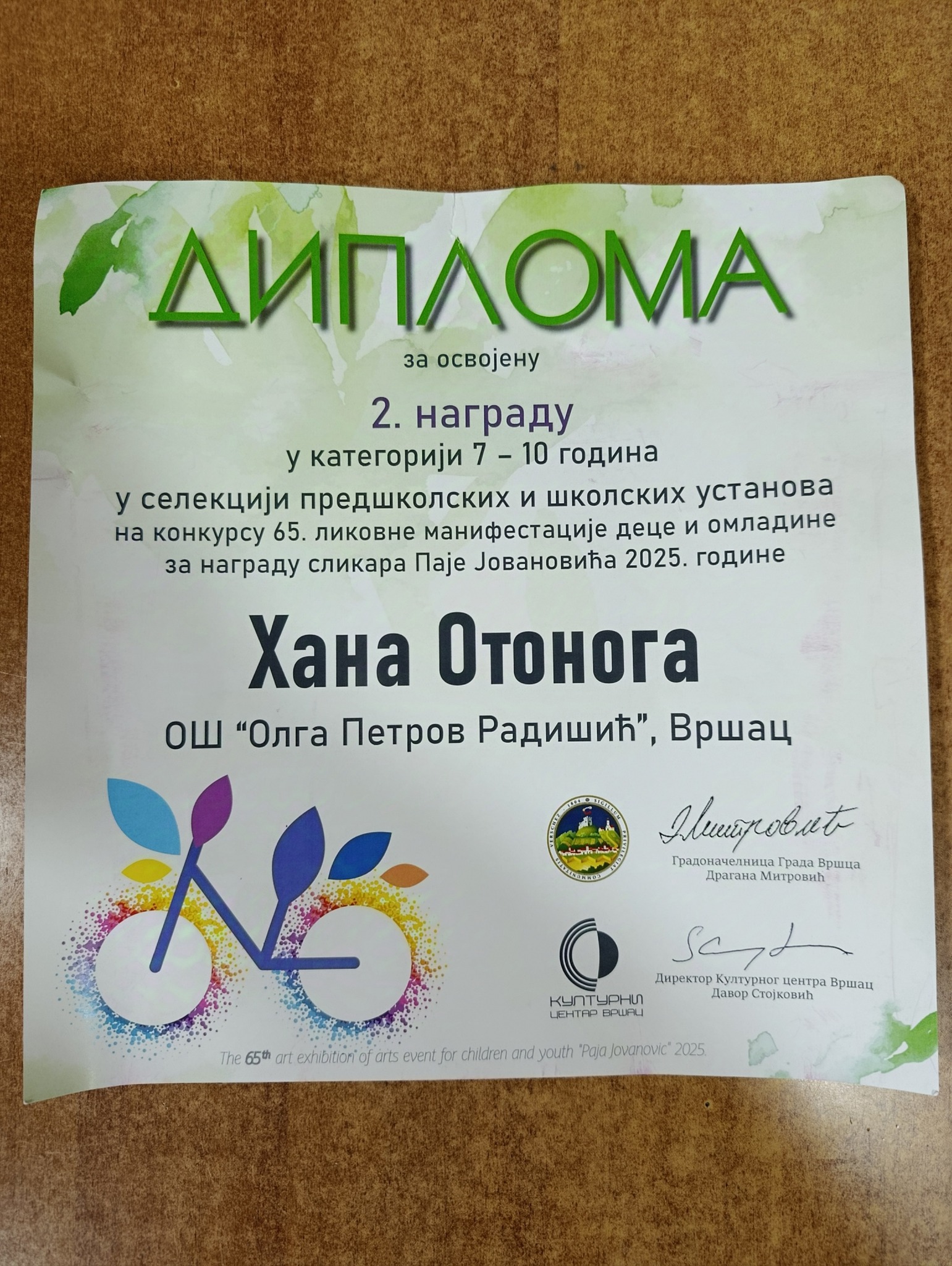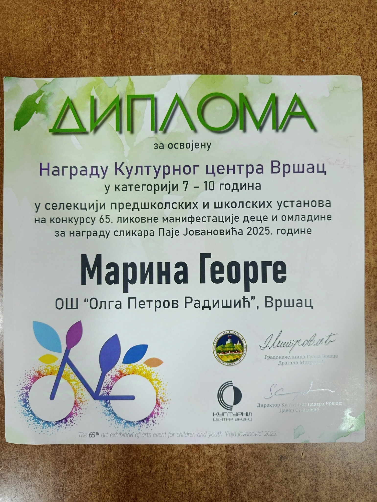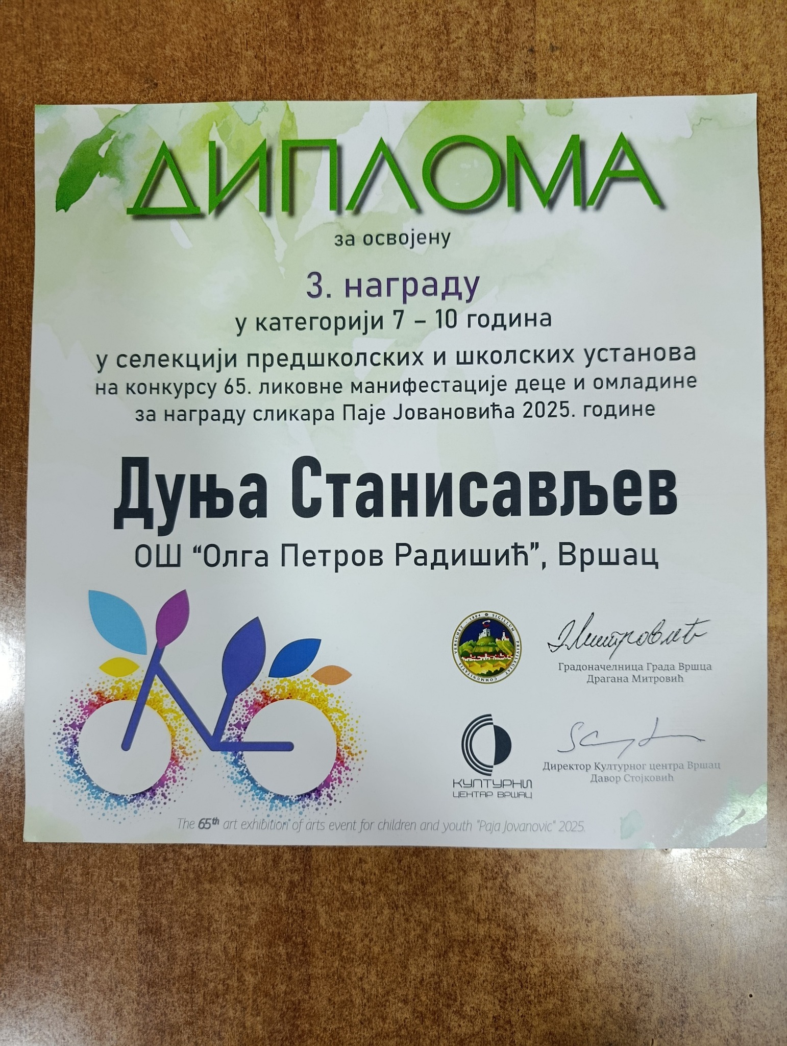 У Конгресној дворани Центра ,,Миленијум“ у петак 12.12.2025. одржана је свечана додела награда учесницима овогодишњег конкурса ликовне манифестације деце и омладине “Награда Паја Јовановић”. Дипломе, плакете и пригодне поклоне награђенима је уручио председник скупштине Града Вршца Милован Вујичић.