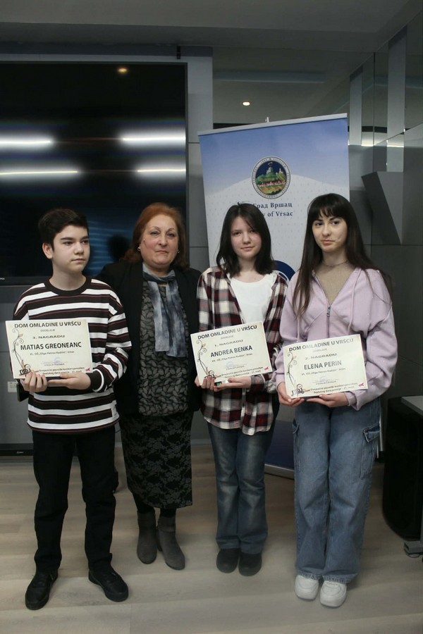 ОпширнијеПоводом двојезичног песничког конкурса, који се организује у част Светског дана поезије у сарадњи Дома омладине Вршац и НИУ “Либертатеа” из Панчева, у пословној кули Центра Миленијум 20. 3. 2026. организована је свечаност на којој су ученицима наше школе уручене награде за најуспешније литерарне радове. Награђени су следећи ученици: Андреа Бенка VII 3, прво место,…